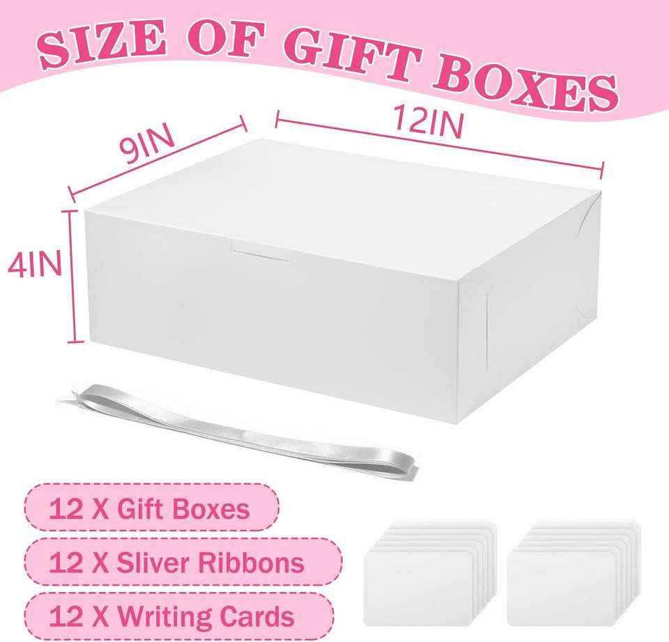กล่องของขวัญสีขาวขนาดใหญ่ ย่อยสลายได้ เป็นมิตรกับสิ่งแวดล้อม รีไซเคิลได้ พร้อมฝาปิดและริบบิ้น สำหรับงานปาร์ตี้ ของชำร่วยวันวาเลนไทน์ ของขวัญเพื่อนเจ้าสาว