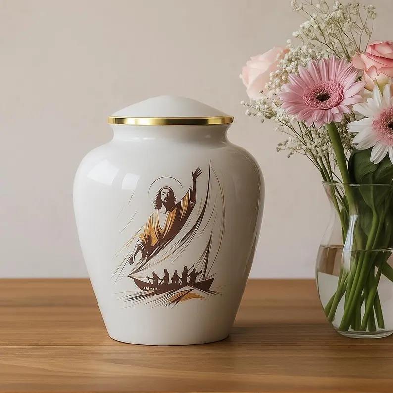 โกศบรรจุอัฐิพระเยซูสีขาวขนาดใหญ่สำหรับบรรจุอัฐิมนุษย์ ความจุสูงสุด 220 ลูกบาศก์นิ้ว