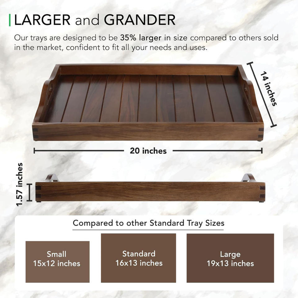 ถาดเสิร์ฟไม้ขนาดใหญ่สำหรับเตียงไม้ออตโตมันถาดตกแต่งที่สมบูรณ์แบบสำหรับบ้านโรงแรมและร้านอาหารชุด3ชิ้น