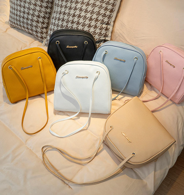 กระเป๋าสะพายข้างอเนกประสงค์ความจุขนาดใหญ่ หนัง PU สีพื้น กระเป๋าแฟชั่นสำหรับผู้หญิง กระเป๋าโท้ท