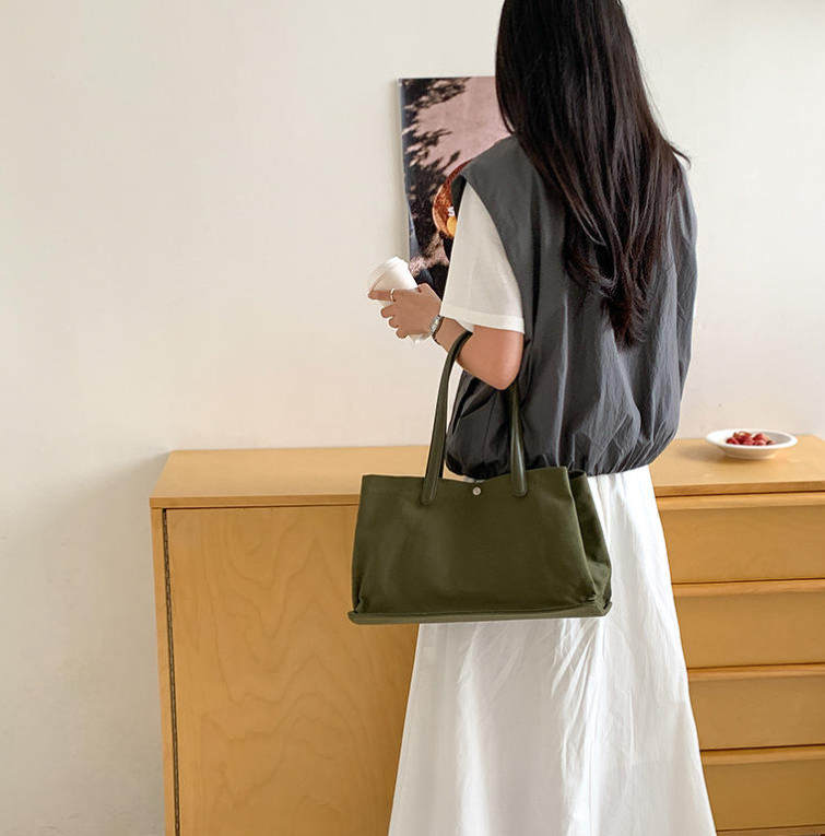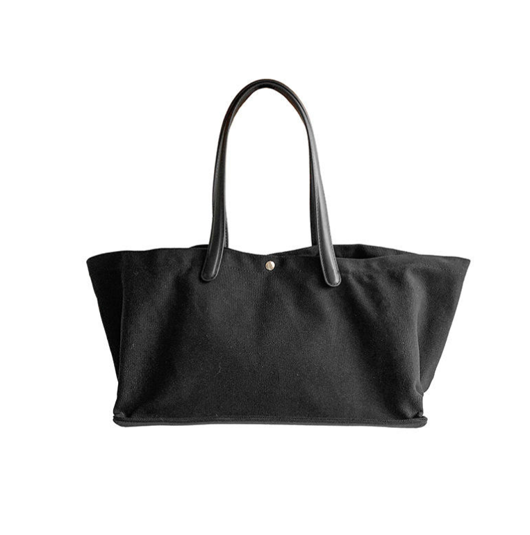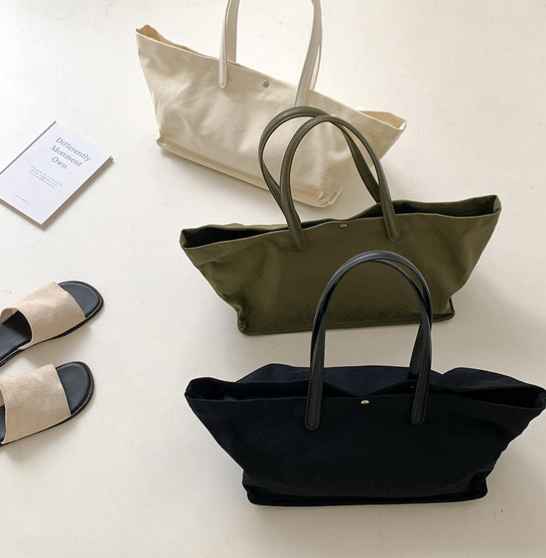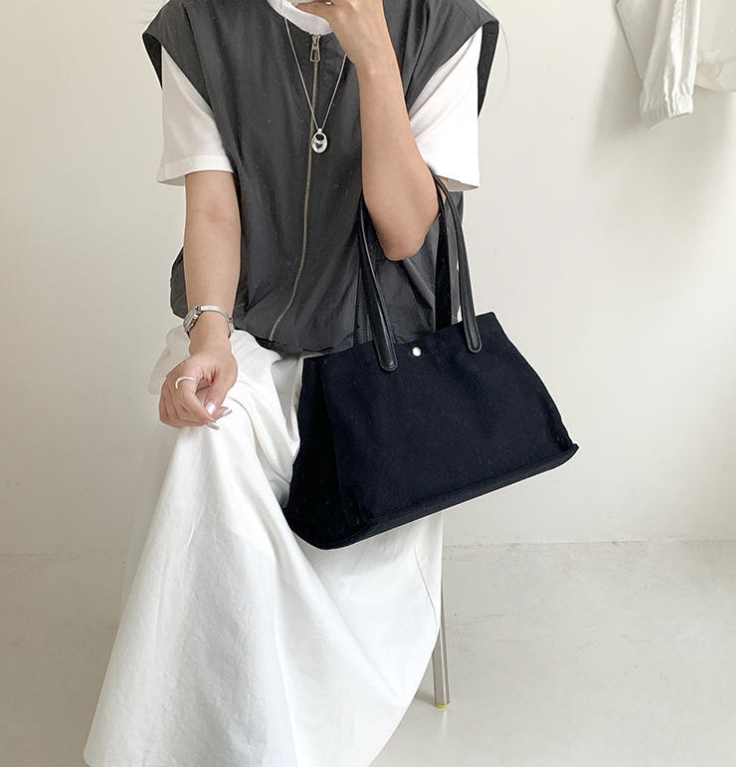 กระเป๋าผ้าแคนวาสทรงใหญ่จุของได้เยอะ พร้อมกระดุมปิด ดีไซน์สะพายไหล่ข้างเดียวแบบทันสมัย เหมาะสำหรับการเดินทางและช้อปปิ้ง