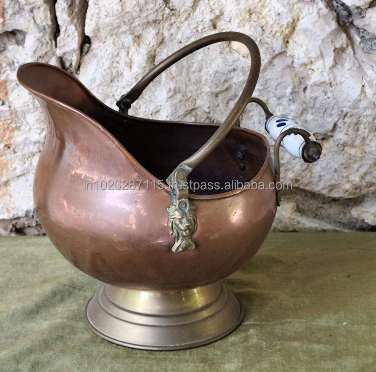 ถังถ่านหินทองแดงขนาดใหญ่พร้อมด้ามจับที่แข็งแรงดีไซน์สวยงามทำด้วยมือเหมาะสำหรับการจัดแสดงเตาผิงในบ้านแบบชนบท