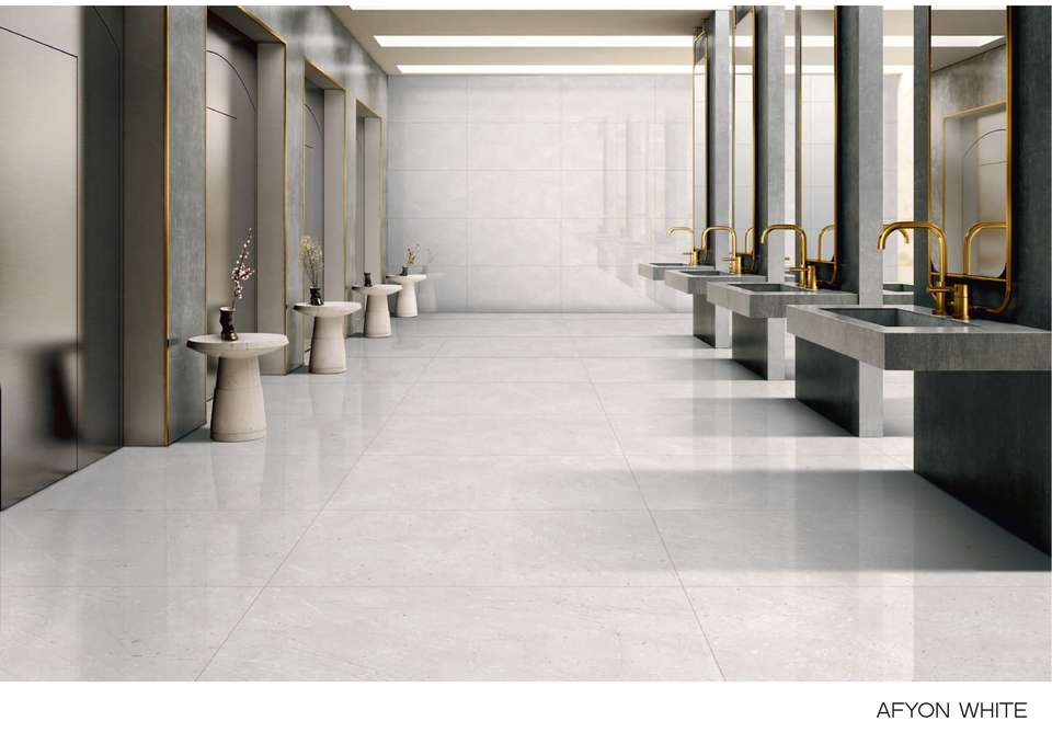 กระเบื้องพอร์ซเลนขนาดใหญ่ผิวมันเงา พร้อมลวดลายแกะสลัก เหมาะสำหรับงานปูพื้นและผนังที่ต้องการความประณีตในสไตล์โมเดิร์น