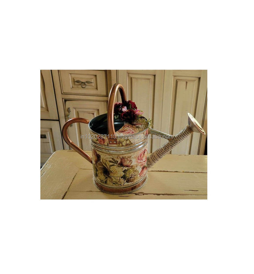 กระป๋องชุบสังกะสีขนาดใหญ่ที่มีลวดลายดอกไม้พิมพ์ลายเคลือบสวยงามสำหรับบ้านไร่ระเบียงกลางแจ้งและใช้ตกแต่งบ้าน