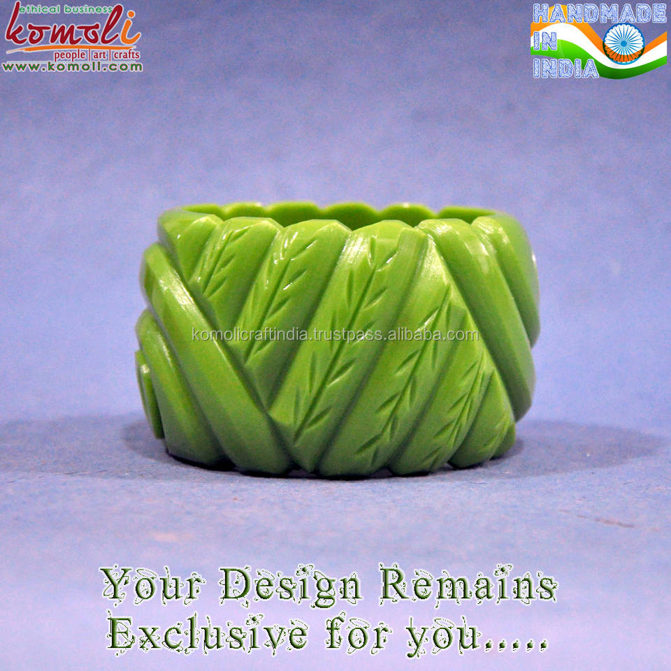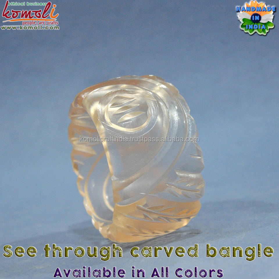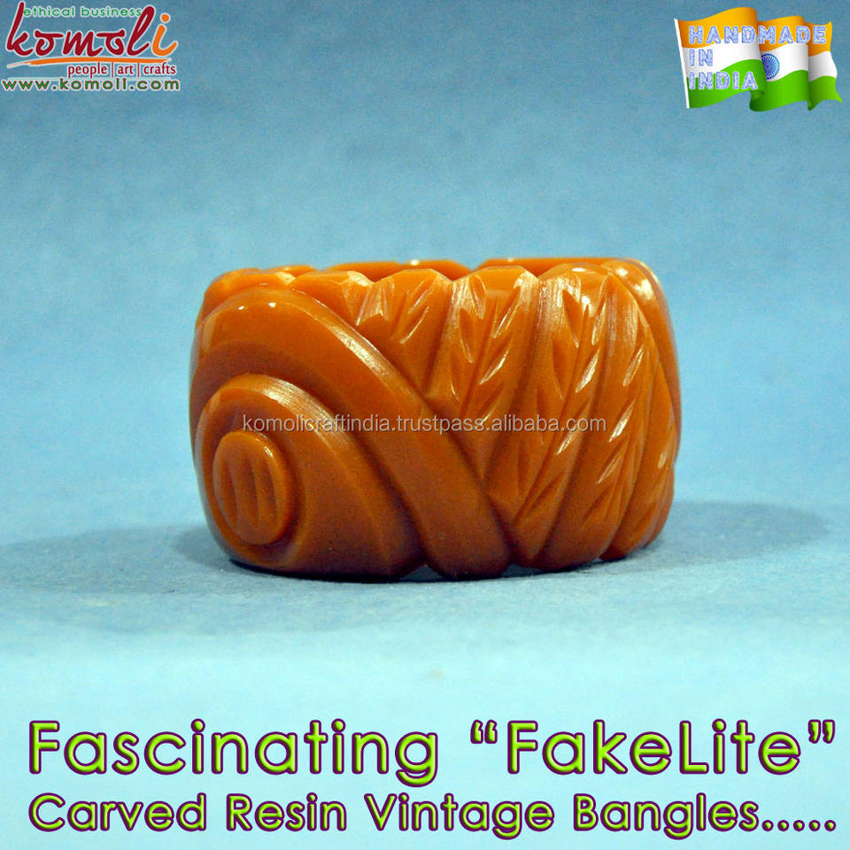 กำไลข้อมือวินเทจแกะสลักสีชมพูขนาดใหญ่ ขายส่ง เครื่องประดับเบกาไลต์