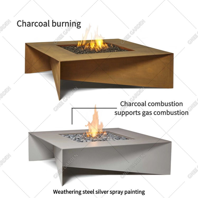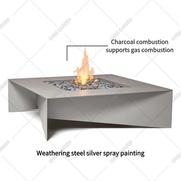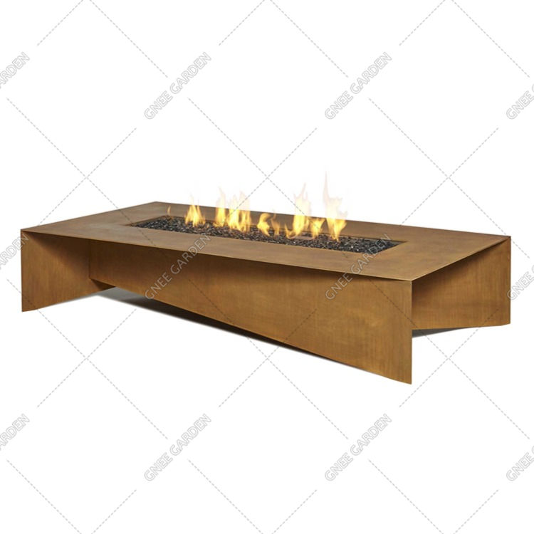 หลุมไฟกลางแจ้งทำจากเหล็กคอร์เทนทรงสี่เหลี่ยมขนาดใหญ่ใช้กลางแจ้งใช้แก๊สธรรมชาติสำหรับสนามหลังบ้าน