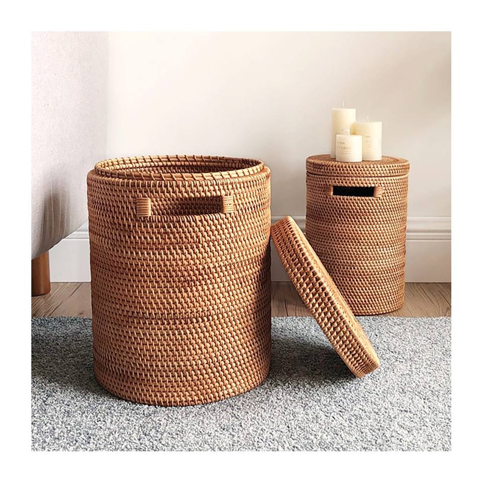 Large Storage Basket with Lid and Handle Rattan Organizer Bin Baskets Natural Eco Friendly Bins