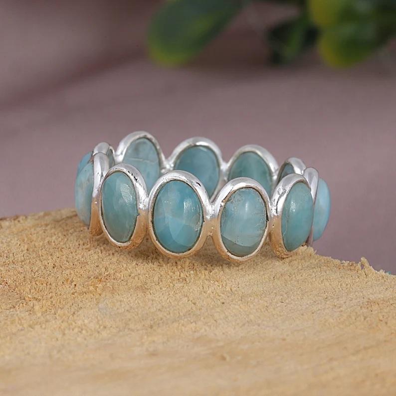 Larimar แหวน925แหวนเงินสเตอร์ลิงการรักษาของขวัญสำหรับผู้หญิงแหวนครบรอบ