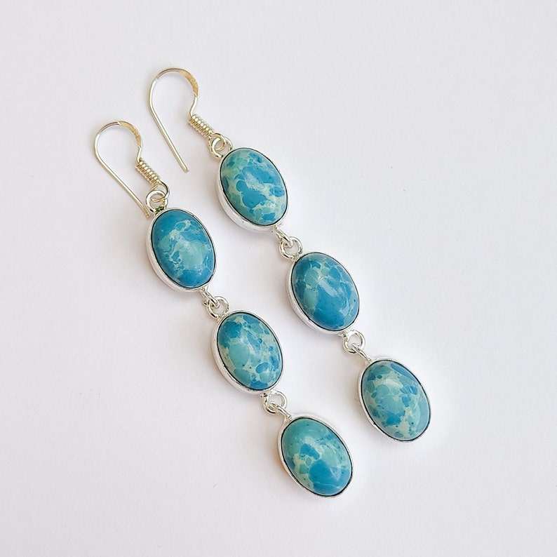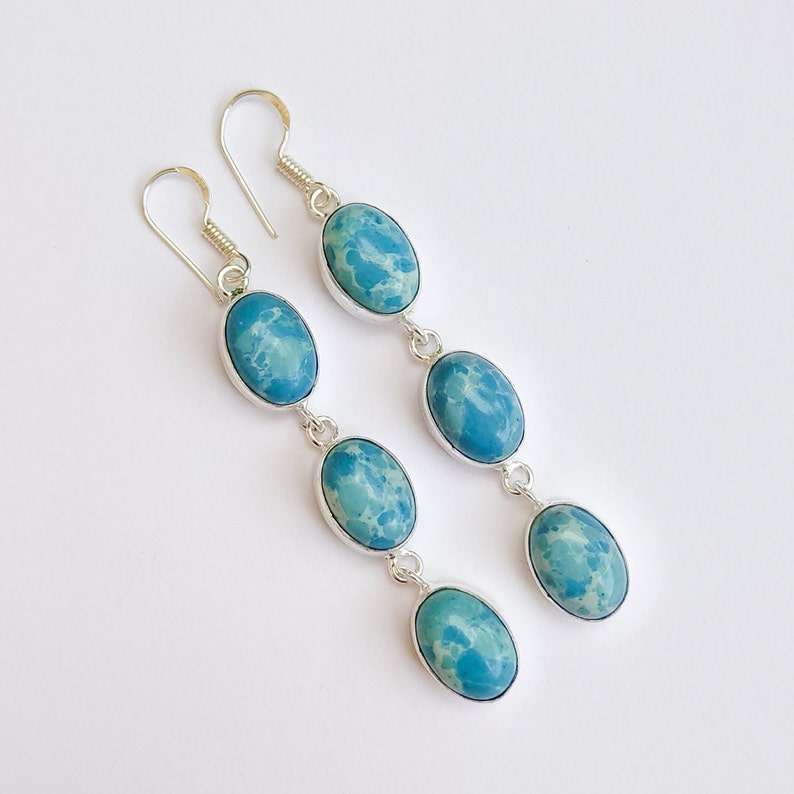 Larimar ต่างหูห้อยหินหลายแบบ925เงินชุบหูลวดทำด้วยมือเครื่องประดับคริสตัล Boho ของขวัญสำหรับคุณแม่