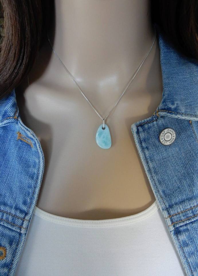 สร้อยคอลาลีมาร์ ชุบเงิน รู 4 มม. พลอยลาลีมาร์ธรรมชาติ เครื่องประดับทำมือ ขายส่ง