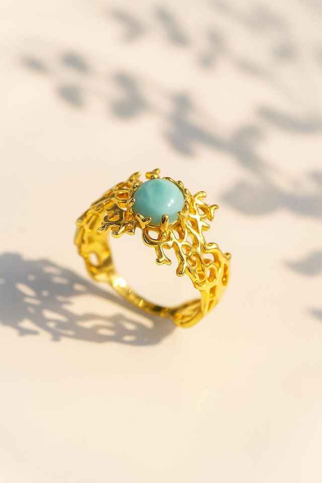 Larimar Ocean Sea Branch Ring Inspired By Coastal Beauty Soft