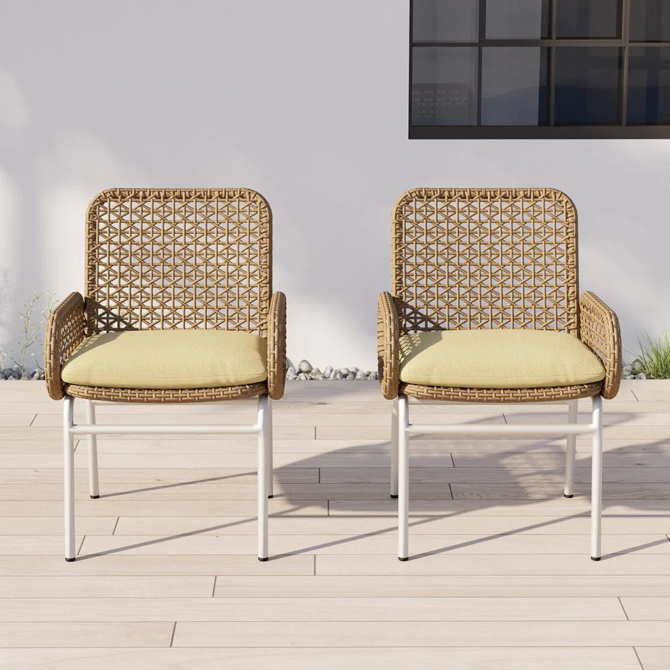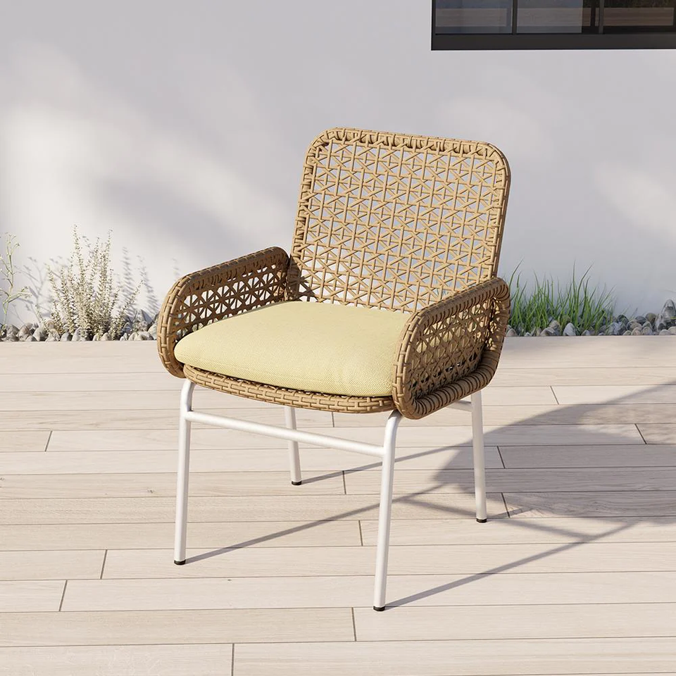 aluminum outdoor chair with white finishing rattan wicker