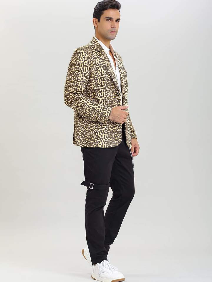 เสื้อเบลเซอร์ลายเสือดาวสำหรับผู้ชาย แบรนด์ Lars Amadeus ปกแบบนูน น้ำหนักเบา สไตล์สปอร์ต