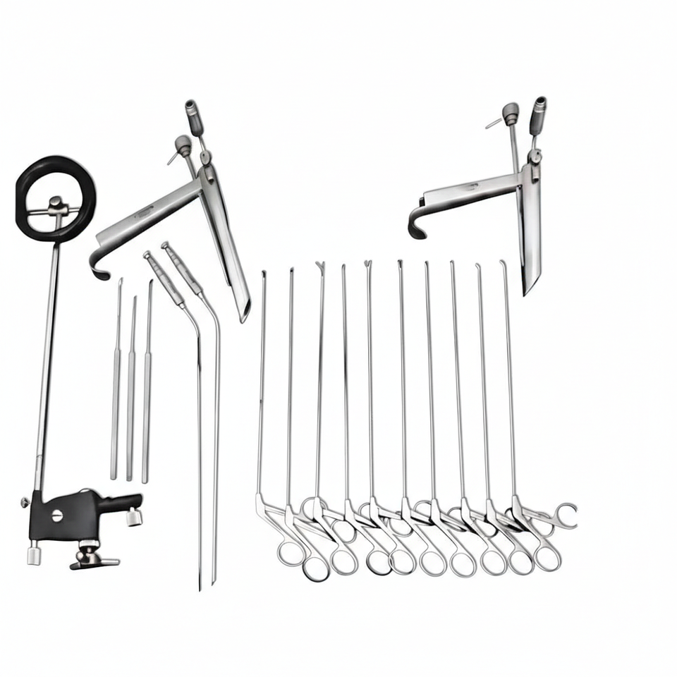 Laryngoscope set on pedestal, laryngeal microsurgery, ENT endoscopic instruments