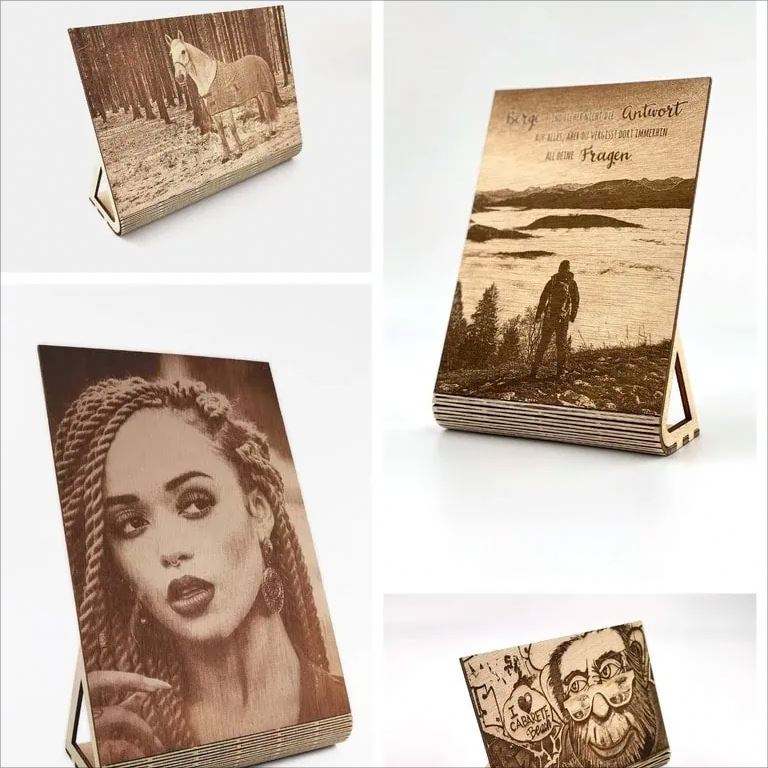 อะคริลิก, แก้ว, หนัง, MDF, กระดาษ, พลาสติก, Plexiglax, ไม้อัด, ยาง, หิน, ไม้, คริสตัล