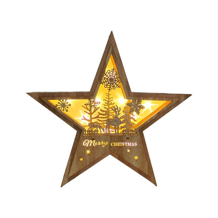 ชื่อผลิตภัณฑ์:ไฟ LED รูปดาวห้าแฉกสุขสันต์วันคริสต์มาสทำจากไม้