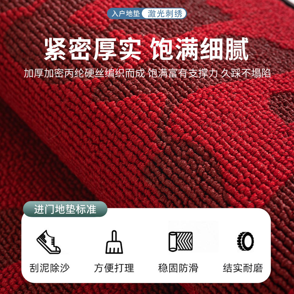 พรมเช็ดเท้าปักลายด้วยเลเซอร์ สีแดง รูปสี่เหลี่ยมผืนผ้า กันลื่น ซักด้วยเครื่องได้ ผลิตจากโพลีเอสเตอร์ สำหรับวางหน้าประตูบ้าน ความหมายแห่งความสงบตลอดทั้งปี