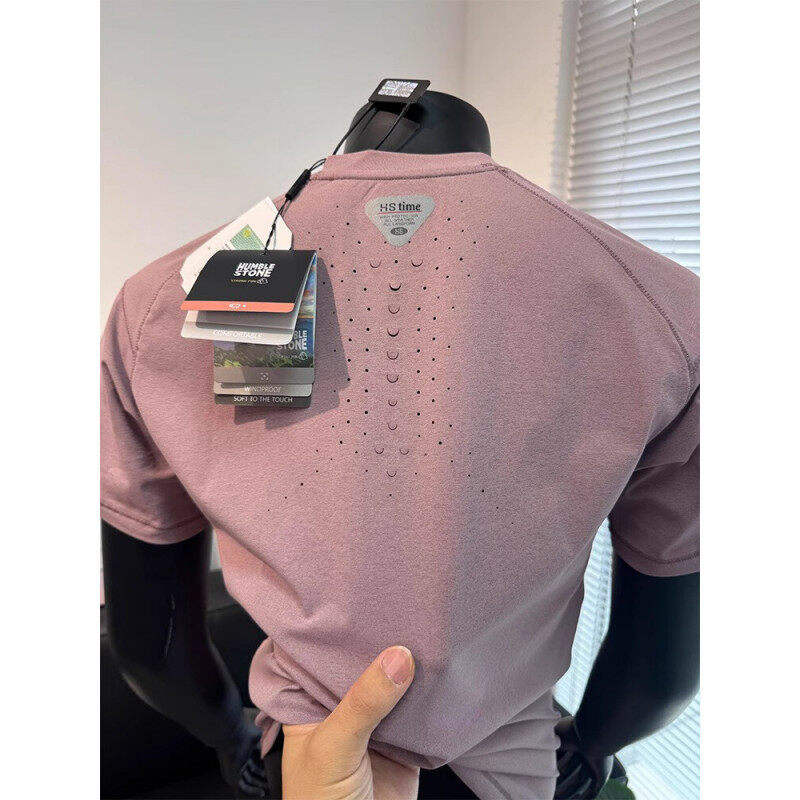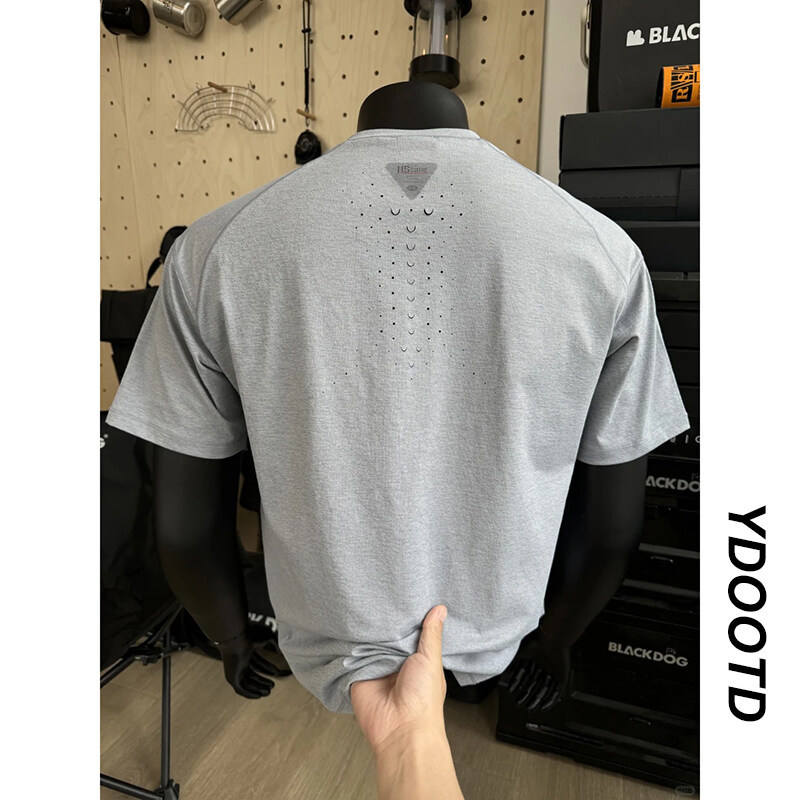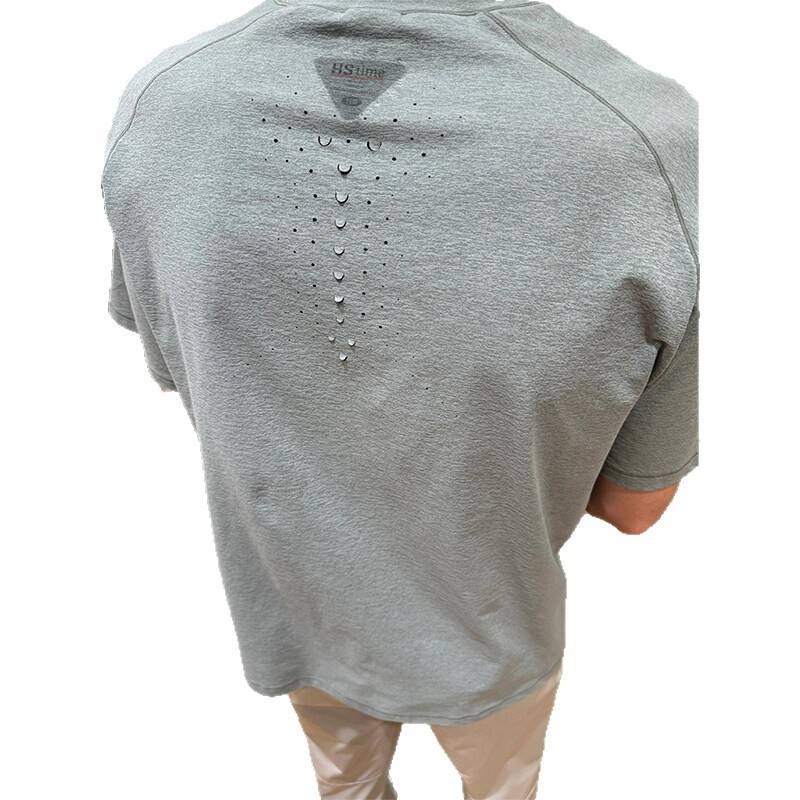 เสื้อยืดผู้ชายแห้งเร็วแบบมีรูระบายอากาศด้วยเลเซอร์ แขนเสื้อแบบแร็กแลน ทรงหลวม ใส่สบาย เหมาะสำหรับเล่นกีฬาและสวมใส่ลำลอง ผลิตจากโพลีเอสเตอร์ 100%