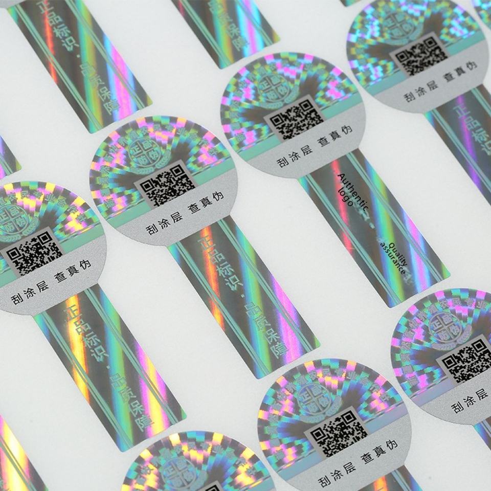 แท็กป้องกันการปลอมแปลงด้วยเลเซอร์ QR Code ฟิล์มกันรอยแบบแกะสลักด้วยแสง ฉลากป้องกันการปลอมแปลง ฟอยล์ปั๊มด้วยคอมพิวเตอร์