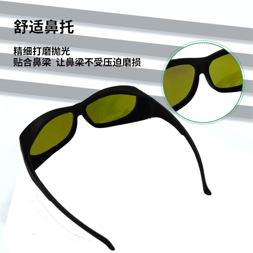 แว่นตานิรภัยสำหรับเลเซอร์ 1064 นาโนเมตร กรอบสีดำ เลนส์หนา 2 มม. ความโปร่งแสง 70% สำหรับการฟื้นฟูผิวสวย ป้องกันการเชื่อม