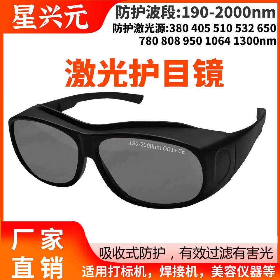 แว่นตานิรภัยสำหรับเลเซอร์ กรอบสีดำ 190-2000nm OD1+ ป้องกันตามมาตรฐาน CE สำหรับงานความงามและการเชื่อม