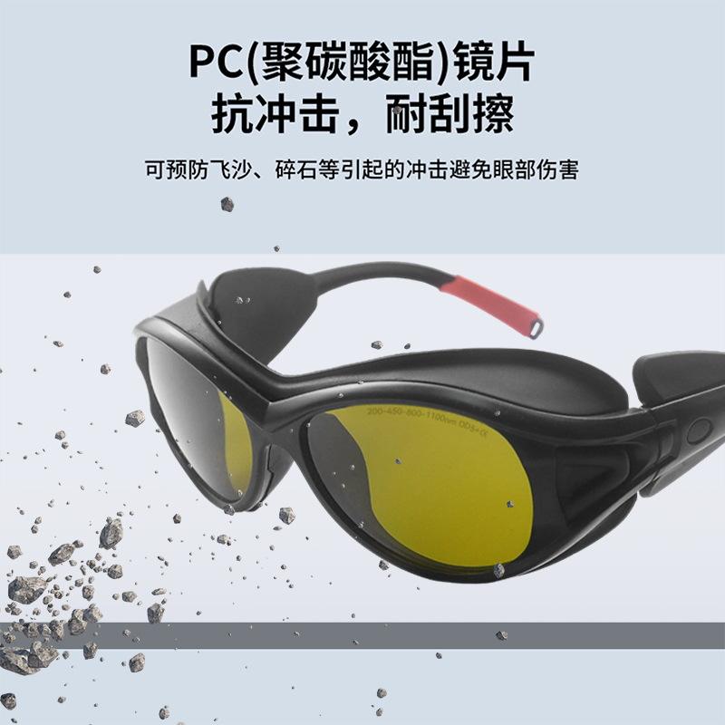 แว่นตานิรภัยแบบเลเซอร์ กรอบสีดำ เลนส์ 2 มม. แว่นตาป้องกันการส่งผ่านแสง 20 ระดับ สำหรับป้องกันรังสีแสง