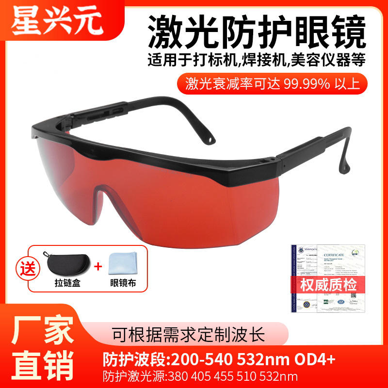 แว่นตานิรภัยสำหรับเลเซอร์ กรอบสีดำ ป้องกัน 532 นาโนเมตร สำหรับอุปกรณ์เสริมความงาม พร้อมกรอบปรับได้และแผ่นรองจมูกเพื่อความสบาย
