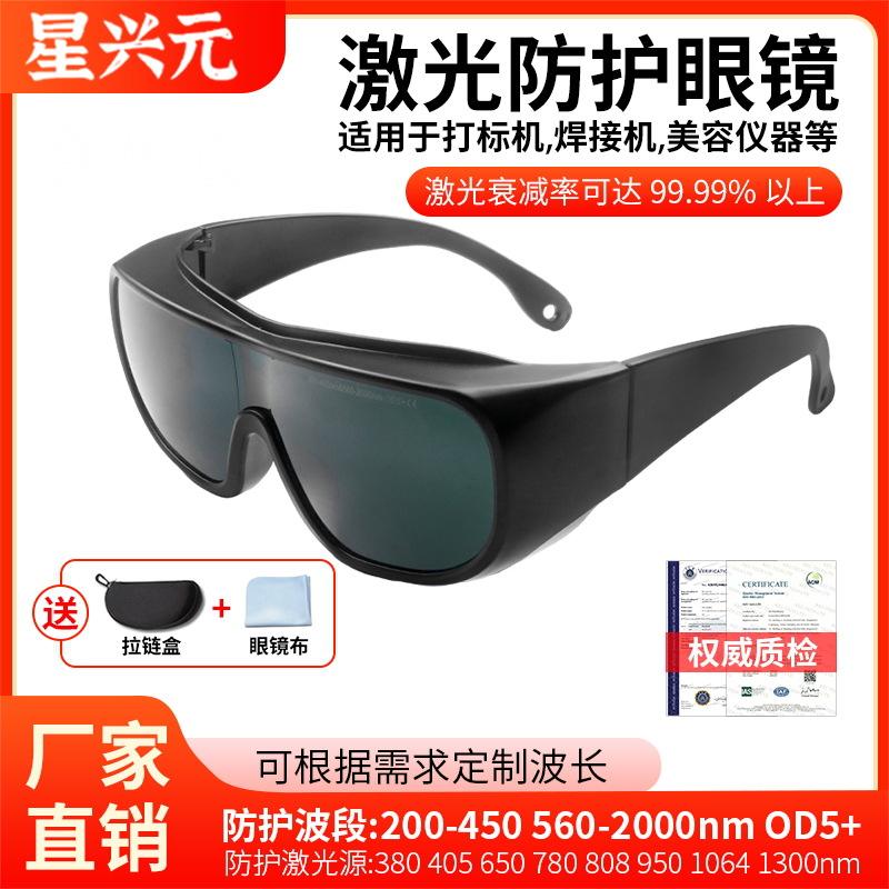 แว่นตานิรภัยสำหรับเลเซอร์ ใช้ในงานแพทย์และเครื่องสำอาง 200-450 นาโนเมตร 560-2000 นาโนเมตร กรอบสีดำ ปรับได้ ผลิตที่เซินเจิ้น
