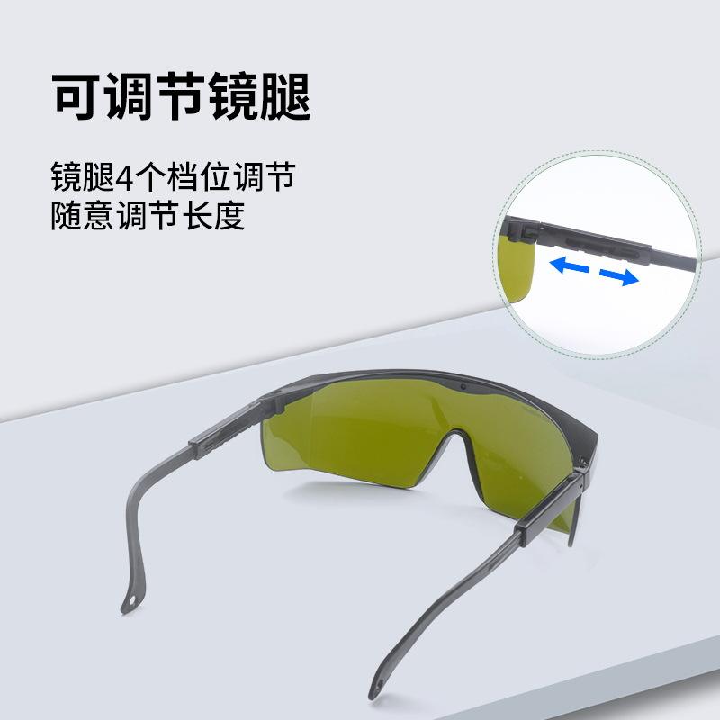 แว่นตานิรภัยสำหรับเลเซอร์ ป้องกันรังสียูวีและแสงสีฟ้า ความโปร่งแสง 70% กรอบสีดำ ปรับขนาดได้ ผลิตที่เซินเจิ้น