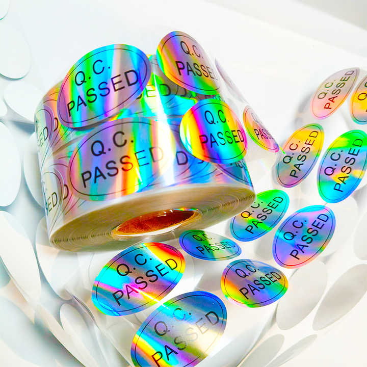 สติกเกอร์กันน้ำสีเงินแบบเลเซอร์ ผ่านการตรวจสอบคุณภาพ (QC) สำหรับการควบคุมคุณภาพสินค้าคงคลังในคลังสินค้า