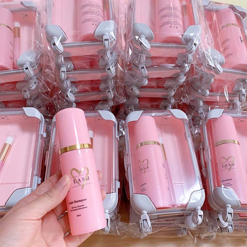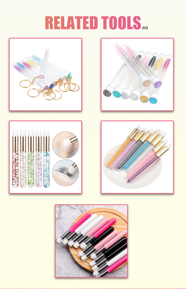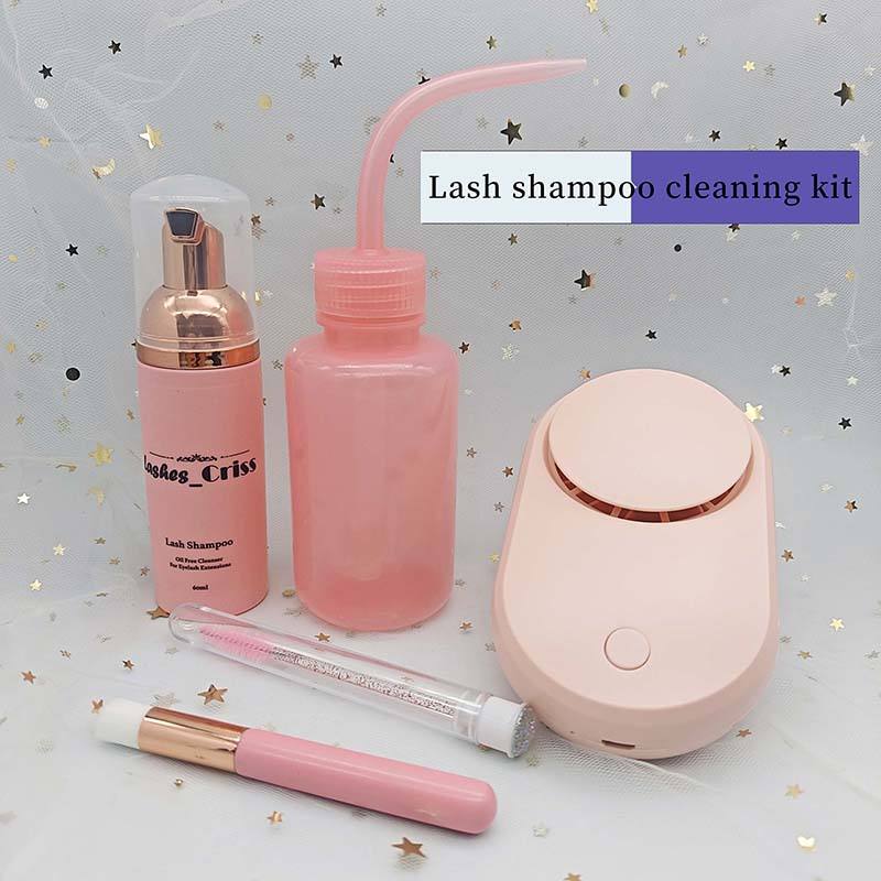ชุดขวดแชมพูและอุปกรณ์สำหรับขนตาปลอม กล่องแชมพูแบบขายส่ง แพ็คเกจแบบวิปปิ้ง ขวดแชมพูขนตาปลอมขนาดเล็ก สีม่วง ดำ ทีทรี