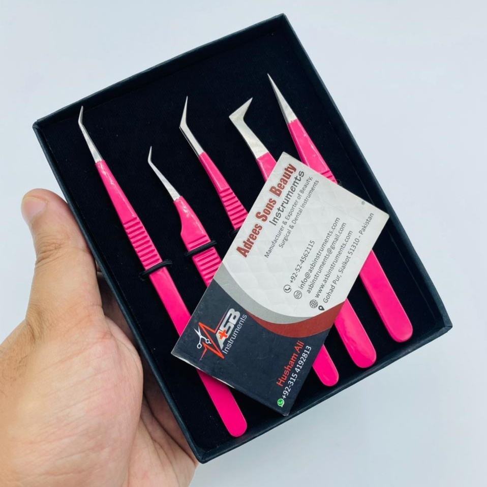 แหนบต่อขนตาปลอมสีชมพูแบบมืออาชีพที่ได้รับการทดสอบด้วยมือดีไซน์แหลมอย่างยั่งยืน