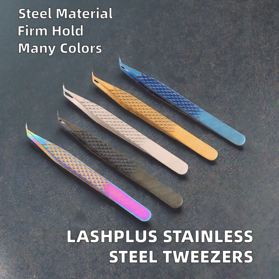 LashPlus Wholesale Private Label Long Boot Eyelash Extension Volume Tweezers Stainless Steel Pointed Fiber Tip Precision