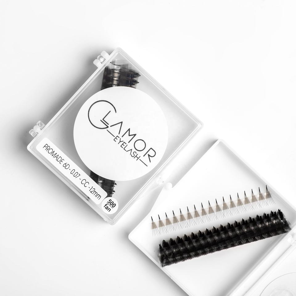 ขนตาปลอม Glamoreyelash งานแฮนด์เมด คุณภาพสูง แบบกลุ่ม 3 มิติ ธรรมชาติ 0.03/0.05 มม. 8-16 มม. พัดสำเร็จรูป แบบแยกเส้น ก้านกลาง ปลายแหลม ฐานบาง CC