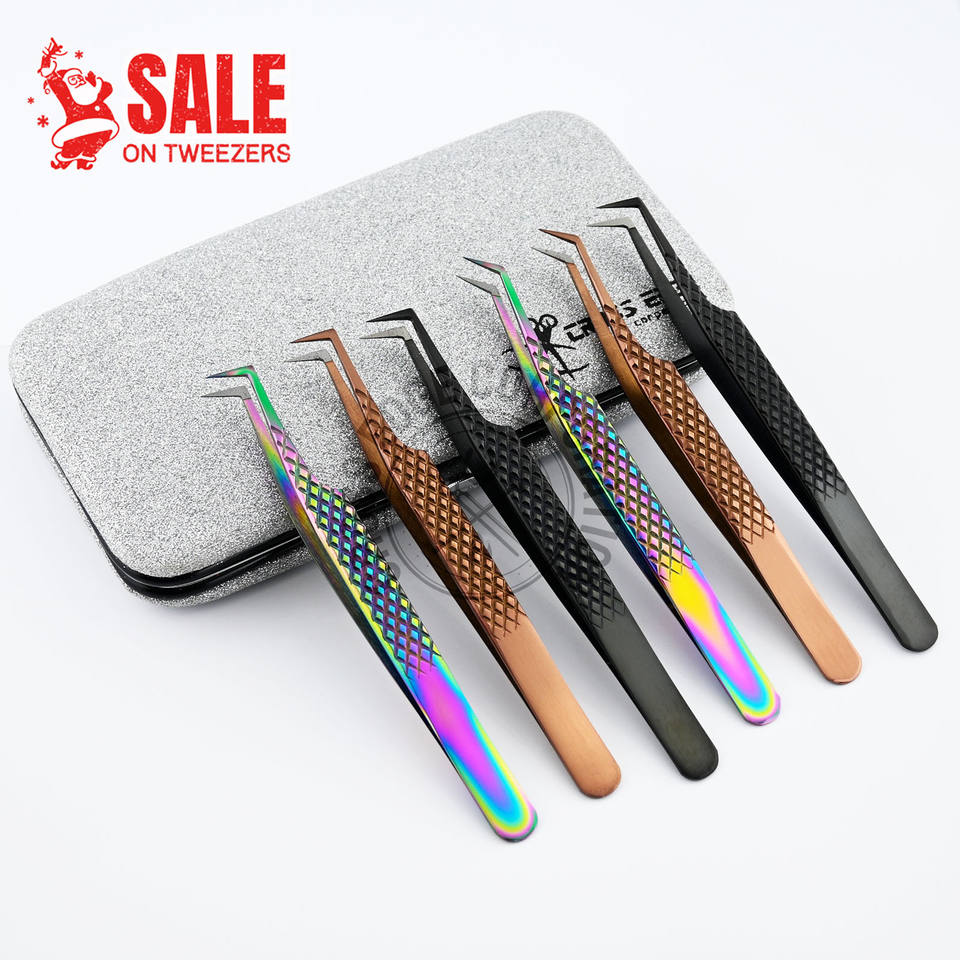 แหนบปลายขนตาปลอม90องศาสำหรับการต่อขนตาพร้อมโลโก้ที่กำหนดเอง