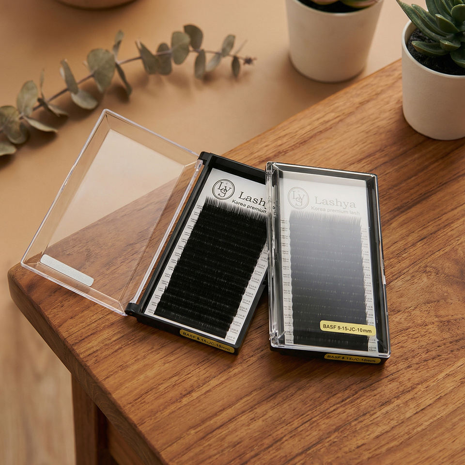 [Lashya] PBT Flat Eyelash Extensions B/C/D Curl & 0.15/0.20 Thickness Wholesale Korean Individual Lashes