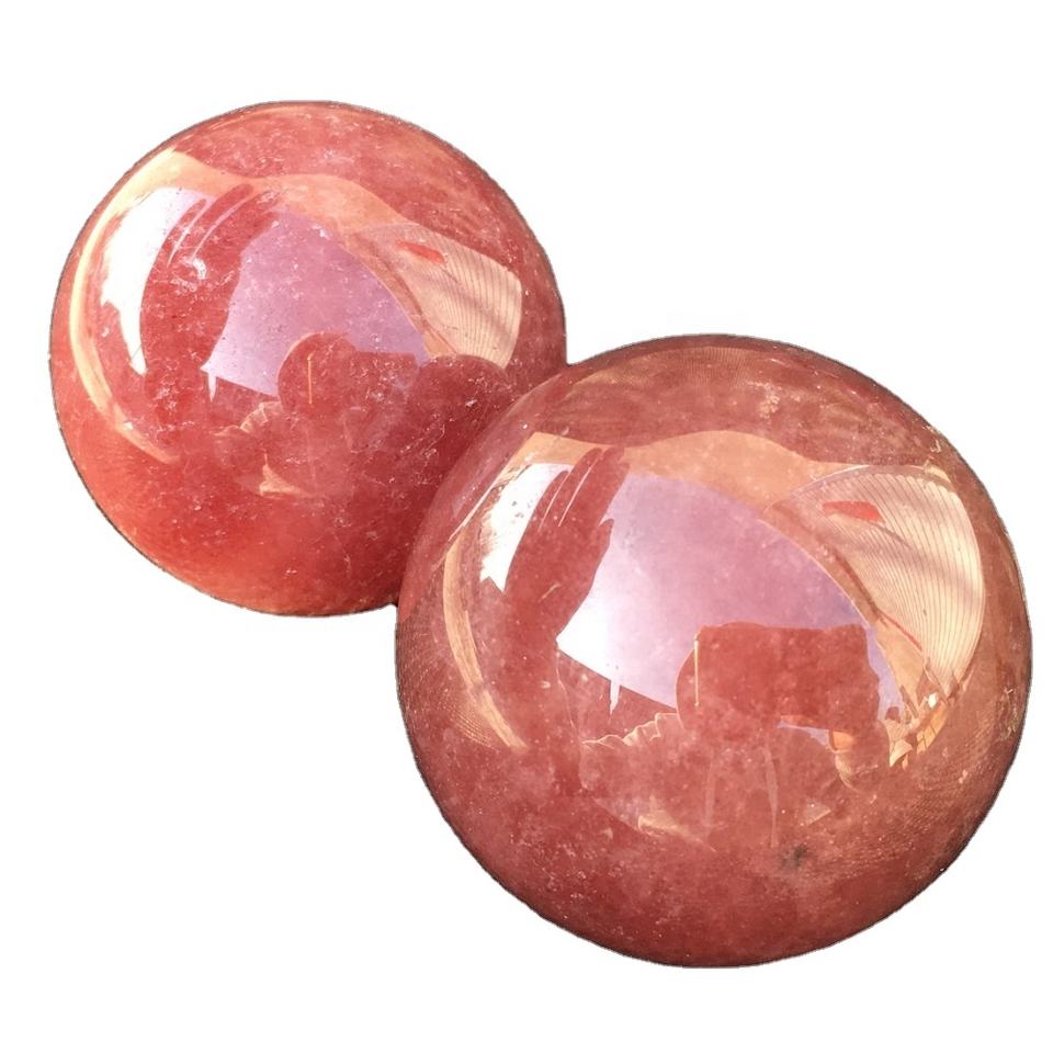 หินควอตซ์ทรงกลมลายสตรอเบอร์รี่หินอัญมณีขัดเงาคุณภาพสูงรักษาความรักของตกแต่งของขวัญฮวงจุ้ย