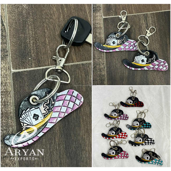 พวงกุญแจหมวกคาวบอยหนังวัวแท้ทำมือรุ่นล่าสุดปี 2026 ลายตารางสไตล์ตะวันตก ของที่ระลึก ของขวัญ ขายส่งจำนวนมาก