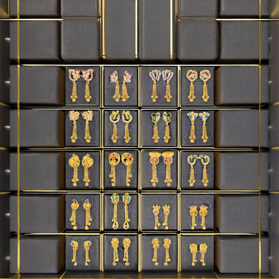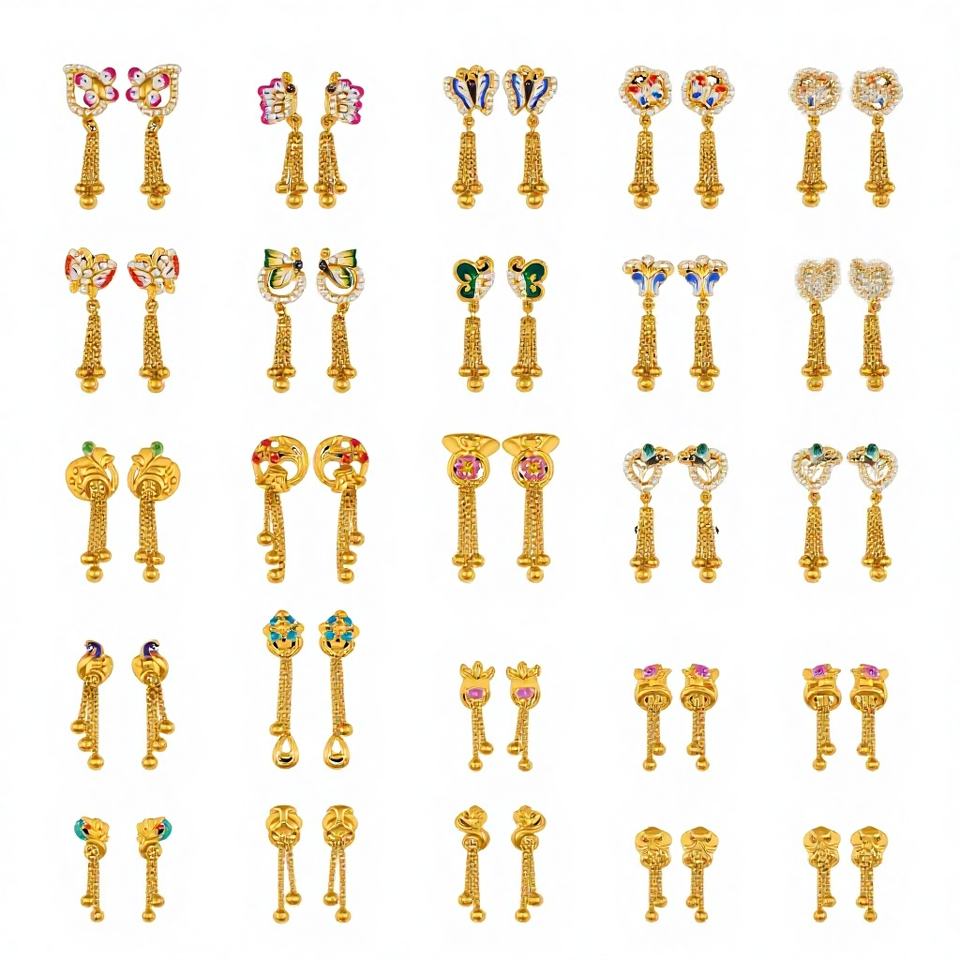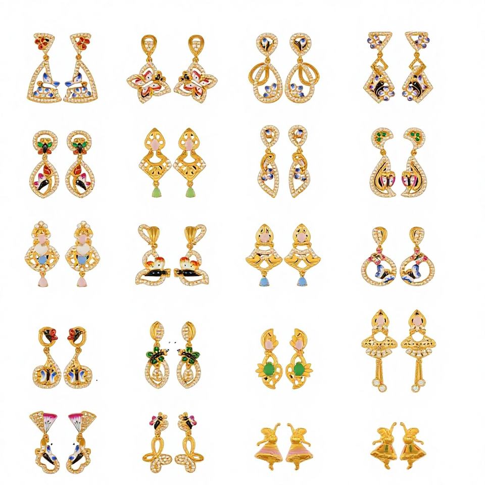 ต่างหูทองคำแท้ 22K ล่าสุด พร้อมจี้ประดับอัญมณี CZ แบบอินเดียดั้งเดิมเคลือบเมนาคารี สำหรับผู้หญิง