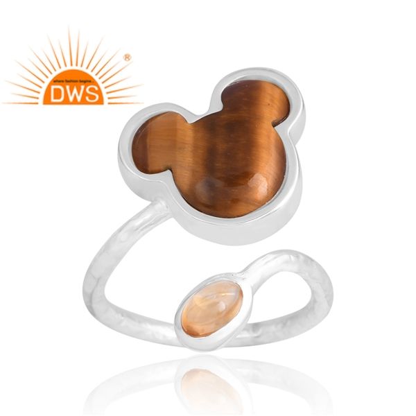 แหวนเงินแท้ 925 ประดับพลอยตาเสือสีเหลืองและซิทริน ดีไซน์สั่งทำพิเศษสำหรับผู้หญิง ของขวัญสำหรับเธอ