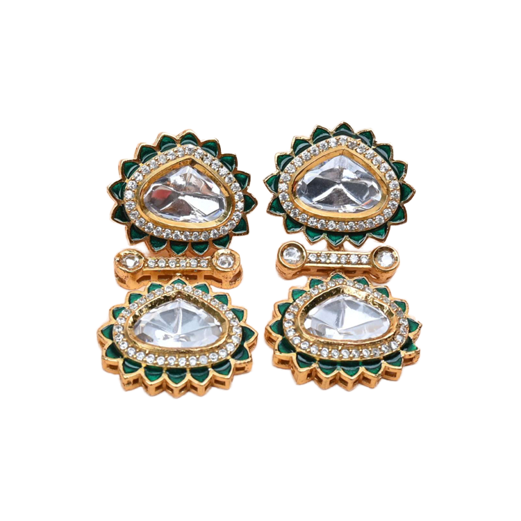 ต่างหูควอทซ์สีเขียวสีขาวประดับด้วยหินจากอินเดีย