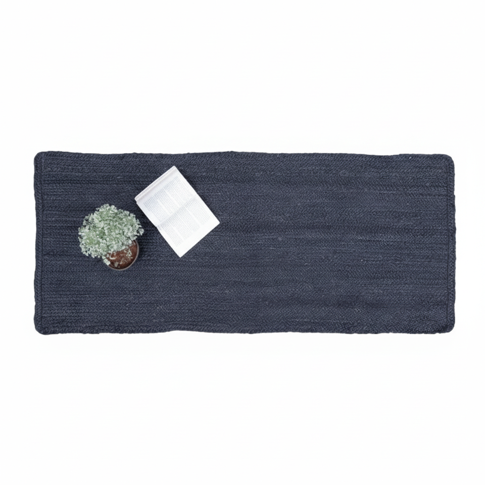 พรมปูพื้นกันลื่นทำจากปอกระเจาสีฟ้าพื้นสำหรับตกแต่งห้องนอนห้องนั่งเล่นห้องโถง