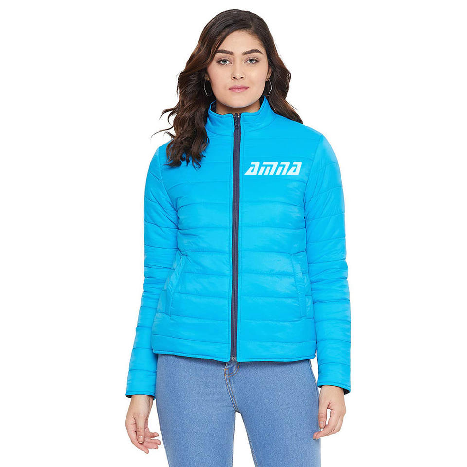 แจ็คเก็ตปักเป้าผู้หญิง,เสื้อแจ็คเก็ตแฟชั่นฤดูหนาวแขนยาวคอตั้งสีฟ้าสินค้าออกใหม่ล่าสุด