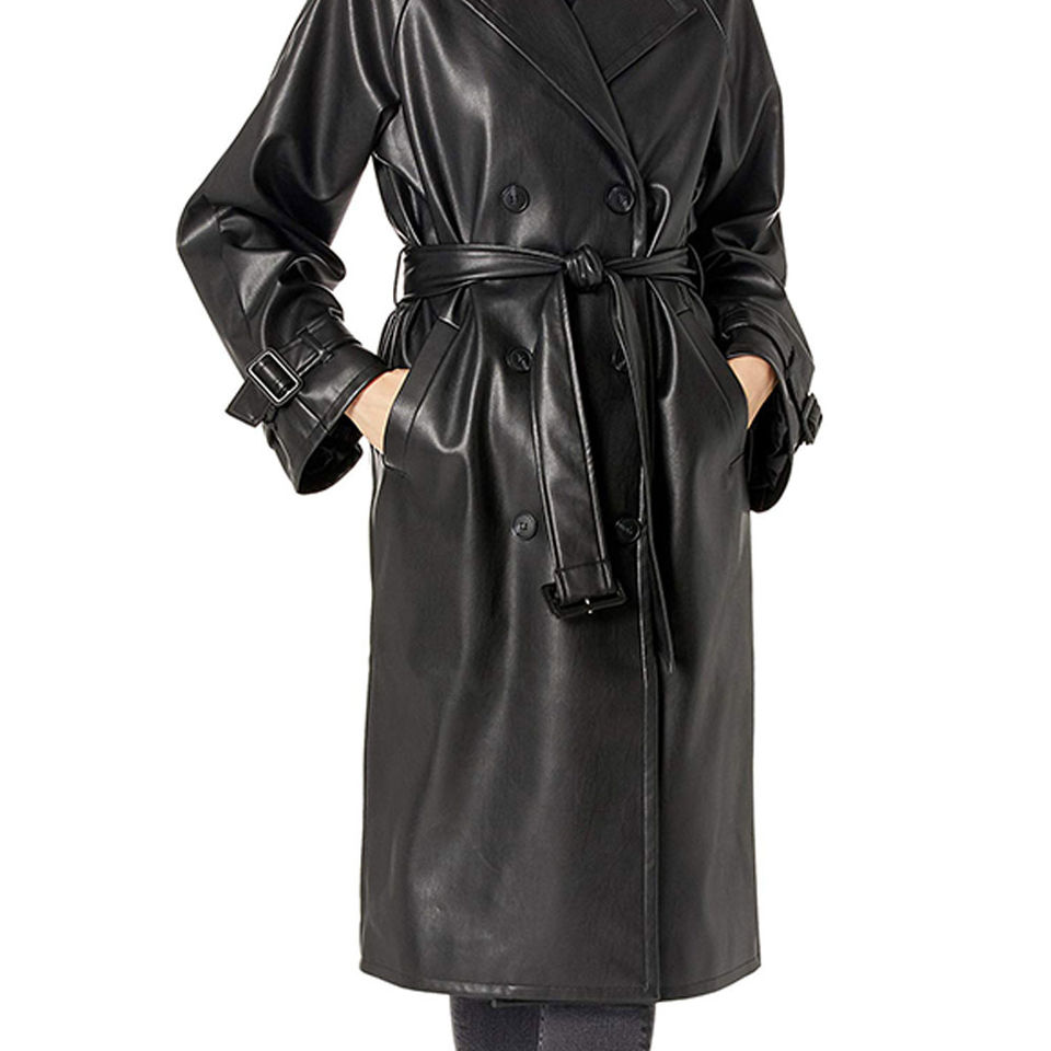 เสื้อโค้ทหนังยาวสำหรับผู้หญิงเสื้อคลุมยาวทำจากหนัง PU