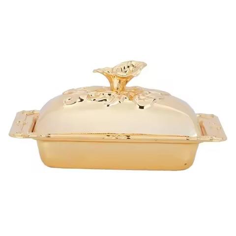 ชามใส่ผลไม้เคลือบทองอะลูมิเนียมทันสมัยรุ่นใหม่ล่าสุด พร้อมฝาปิด เป็นมิตรกับสิ่งแวดล้อม เหมาะสำหรับงานเลี้ยง โรงแรม และงานแต่งงาน