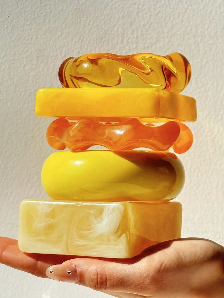 สินค้ามาใหม่ สร้อยข้อมือเรซิ่นดีไซน์เก๋ CAZ-0770 น้ำหนักเบา สะดุดตา ดูเรียบหรูแบบกระจก เหมาะสำหรับแฟชั่นประจำวัน