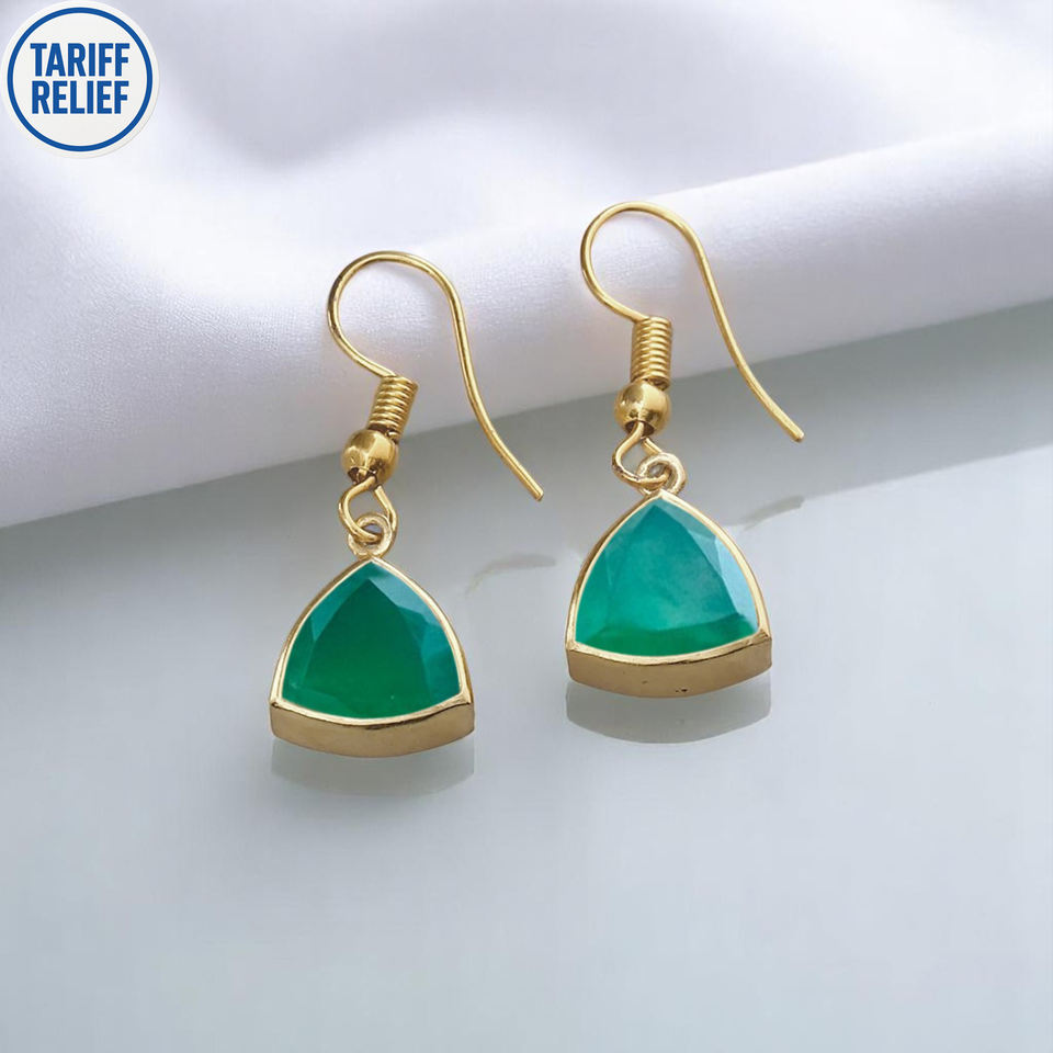 ต่างหูเงินสีเขียวประดับพลอยโอนิกซ์สีเขียวดีไซน์แบบห้อยชุบทองสำหรับผู้หญิงสินค้ามาใหม่ล่าสุด