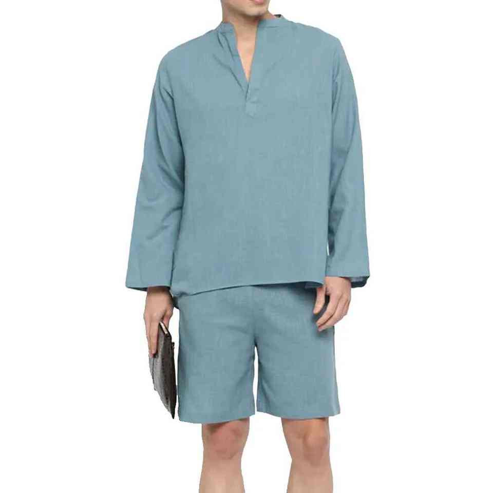 เสื้อยืดคอวีแบบแห้งเร็วพร้อมกางเกงขาสั้นแบบผูกเชือกชุดแฝด2ชิ้นสำหรับผู้ชายใหม่ล่าสุดคุณภาพจากโรงงาน