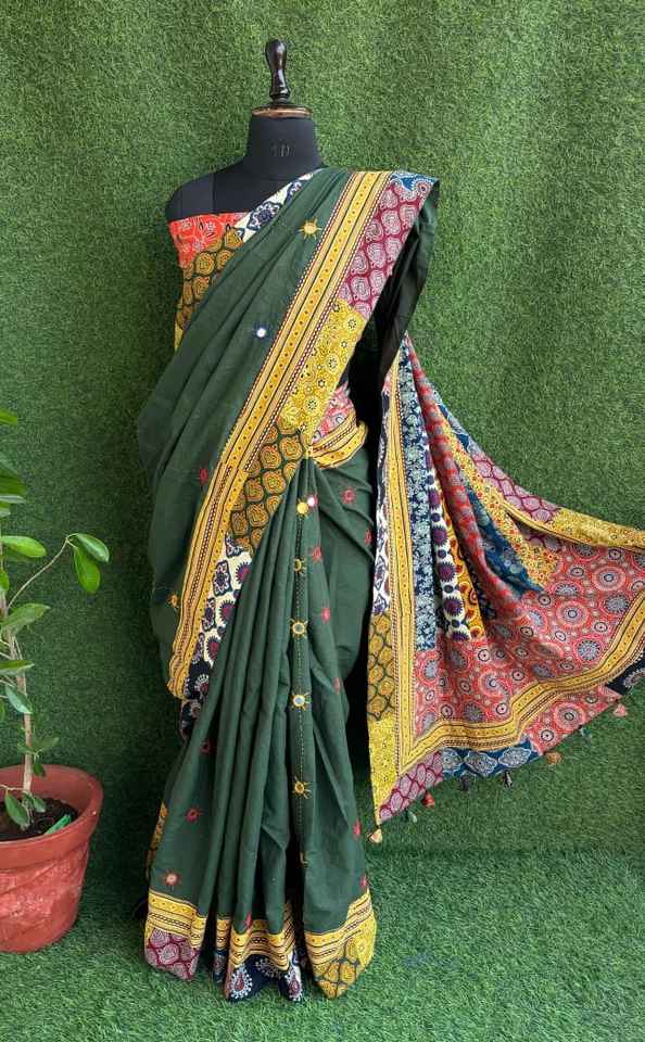 ชื่อผลิตภัณฑ์:สารีผ้าฝ้ายแท้พร้อมแผ่นปะและงานกระจกทำมือ