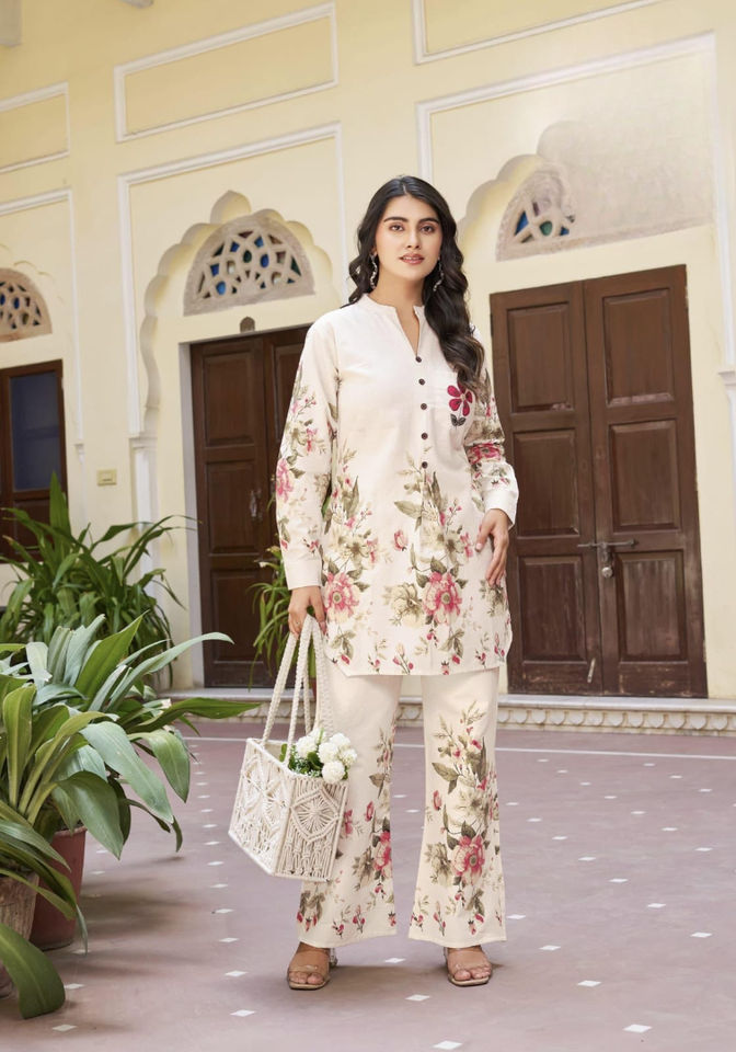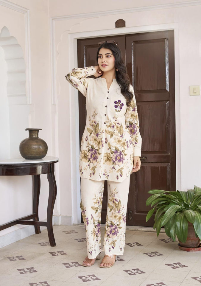 ชุดเสื้อแขนยาวกางเกงขาบานพร้อมกระดุมและลวดลายตกแต่งน้ำหนักเบาล่าสุดสำหรับทุกโอกาส